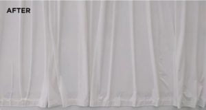 - خشک کرده پرده :پس از تمیز کردن کامل، به مرحله خشک کردن می رویم. روشهای خشک کردن تخصصی ما تضمین میکند که پردههای شما به شیوه ای خشک شوند تا از چروک شدن پرده جلوگیری به عمل آید.